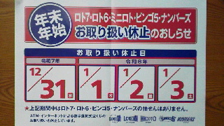 数字選択式宝くじ 年末年始販売休止のお知らせ