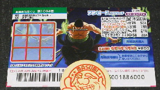 2026年2月17日明日2/18、[ワンピーススクラッチ ゾロ9(1枚200円)]の 販売が始まります。 今回のルールは、券面左側の赤枠の中を削り、同じ絵柄が 縦・横・斜めのいずれか一列に3個並べば当たり!の “タテ・ヨコ・ナナメ”。 ゾロの刀が3セット並べば、2等5万円! 麦わらの一味のマークが3個並べば、1等500万円!! 当選本数は12本です。 今週の[スクラッチ]は[ゾロ9]一本! 10枚セットを買えば末等200円が3本当たるワクワク設定です。 明日からの[ゾロ9]にどうぞご期待ください。 (T店長) <本日抽選日> [ナンバーズ3&4]第6921回 [ミニロト]第1374回 ≪[バレンタインジャンボ]は夜10時まで販売!≫
