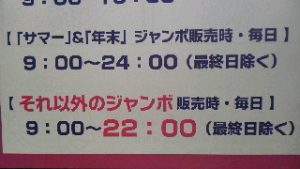 なお、最終日のみ[ジャンボ]売り切れ次第終了となります